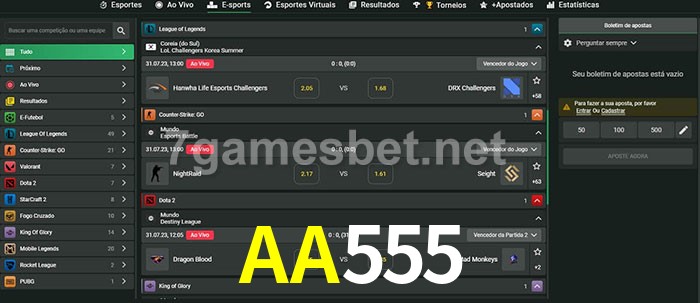 A aposta AA555 oferece aos jogadores a experiência mais conveniente de apostas em eSports!